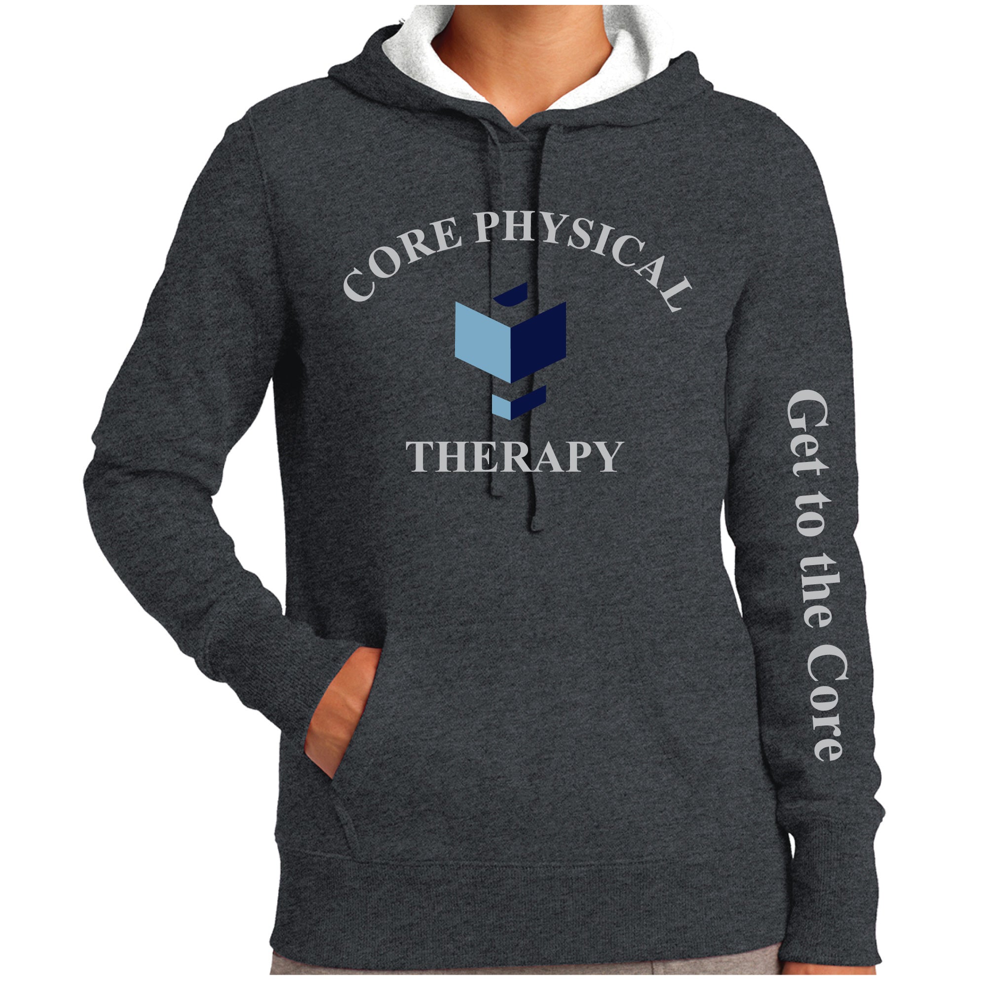 The logo will be screen printed on the center full front of the sweatshirt and the phrase "Get to the Core" will be screen printed down the left arm.