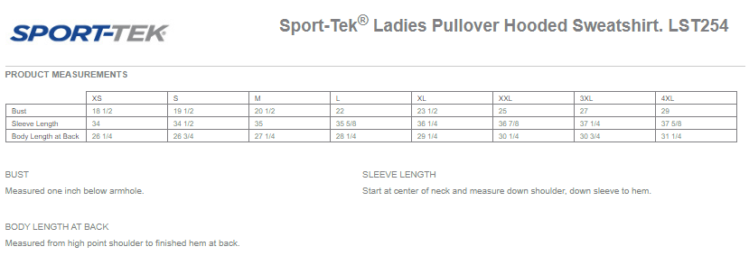 The Sport-Tek Ladies Pullover Hooded Sweatshirt includes: