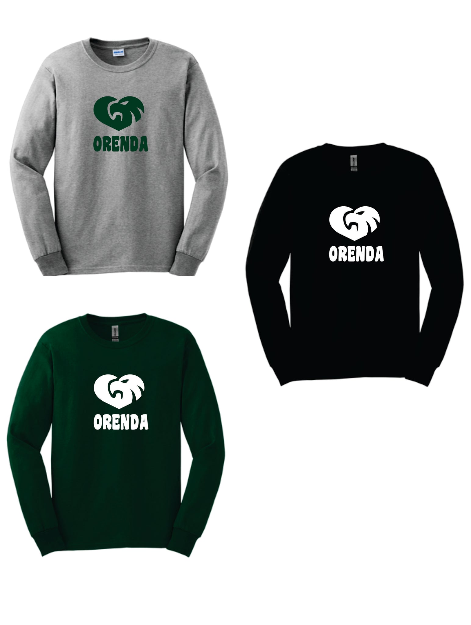 LONG SLEEVE COTTON T-SHIRT - AVAILABLE IN YOUTH OR ADULT, CHOICE OF LOGO, and is available in Green, Black, or Grey.