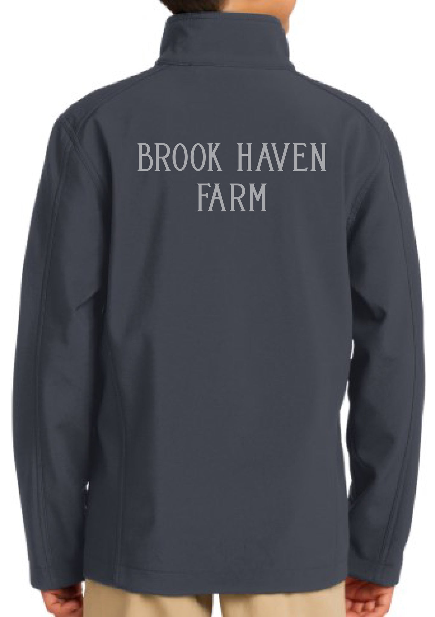 Port Authority Y317 Youth Soft Shell Jacket with Brookhaven Farm Logo Embroidered on the left chest.